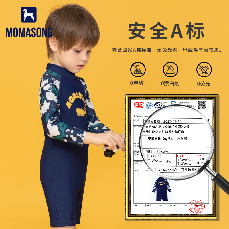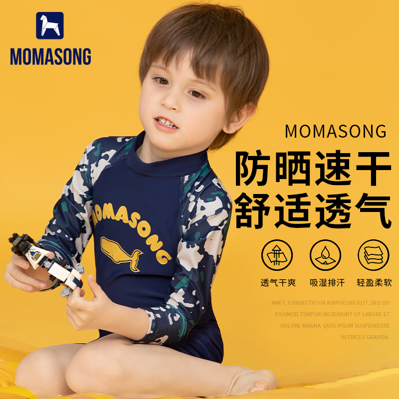 Momasong儿童泳衣男童男孩2025新款连体防晒中大童专业训练游泳衣