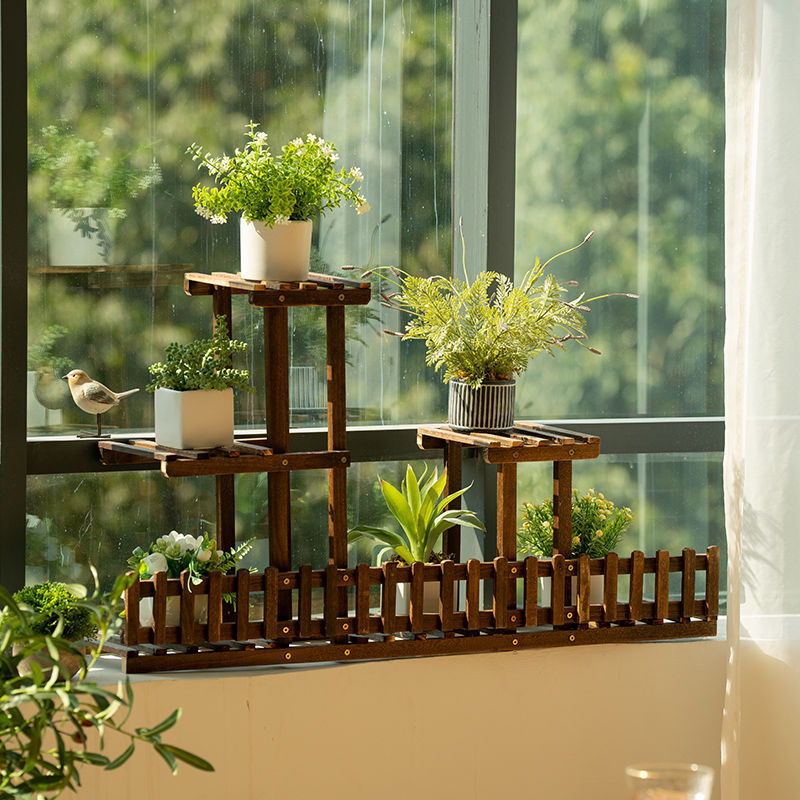 窗台多肉花架子落地阳台室内飘窗置物架多层实木装饰摆放花盆架子