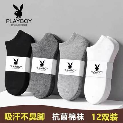 花花公子袜子短款男士薄款透气纯棉抗菌短袜吸汗运动防臭船袜