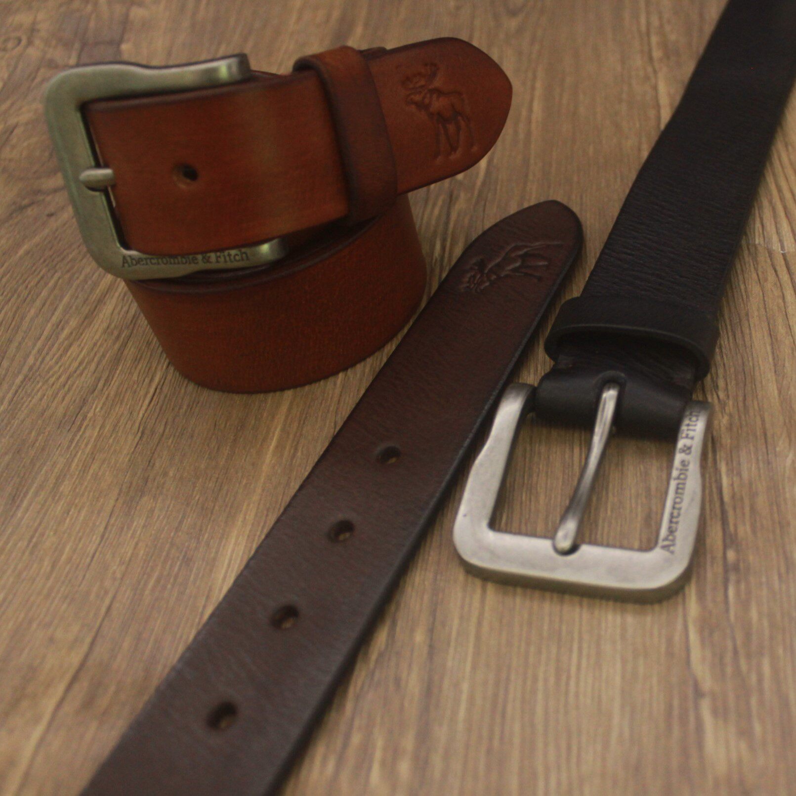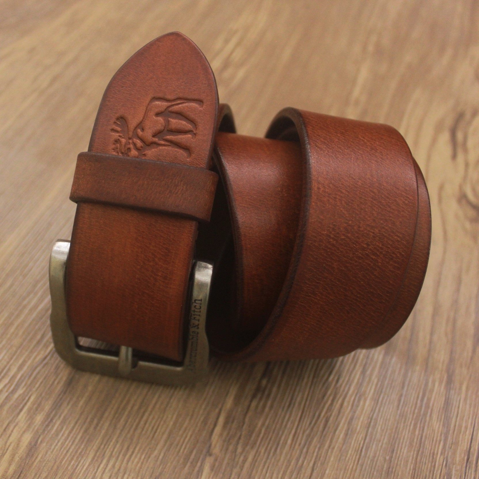 男士真皮外贸AF小鹿腰带针扣头层牛皮休闲青年光面牛仔裤带皮带