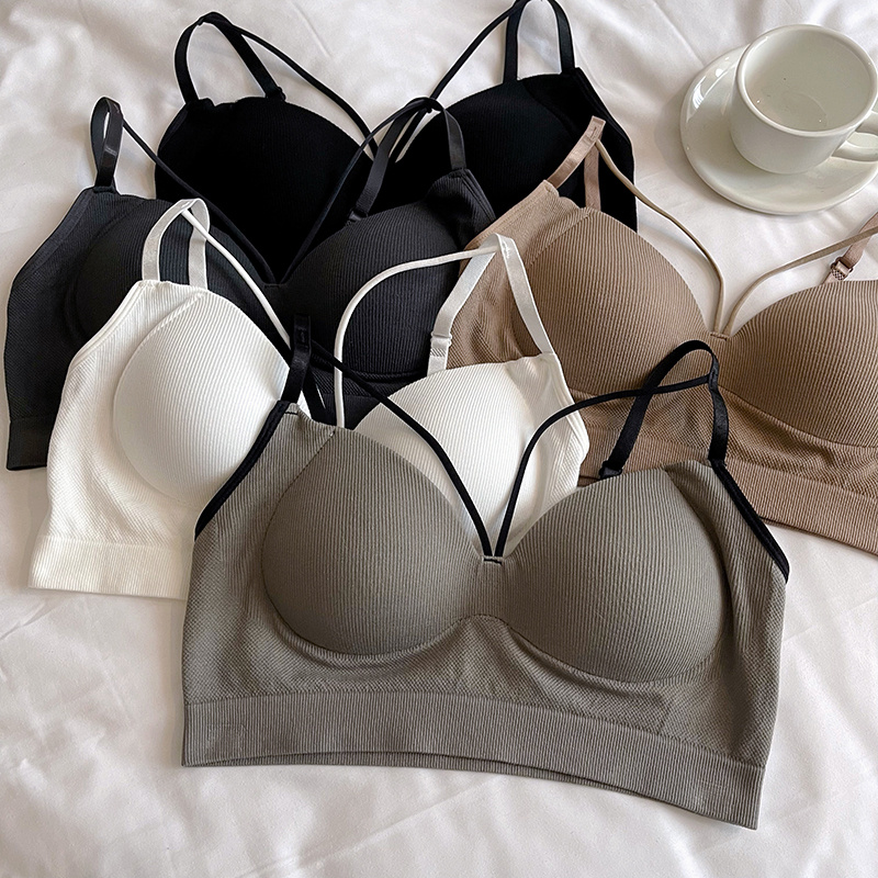 美背内衣女学生运动无钢圈小胸聚拢吊带背心式文胸一体裹胸罩内搭