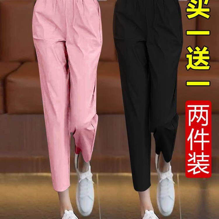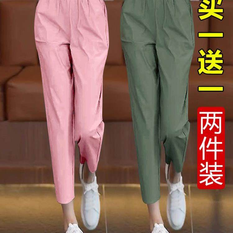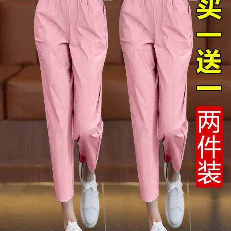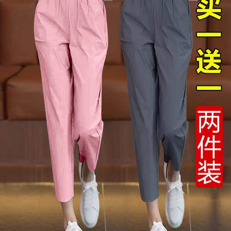 单/两件 纯色速干哈伦裤女夏季松紧高腰宽松休闲小个子九分萝卜裤