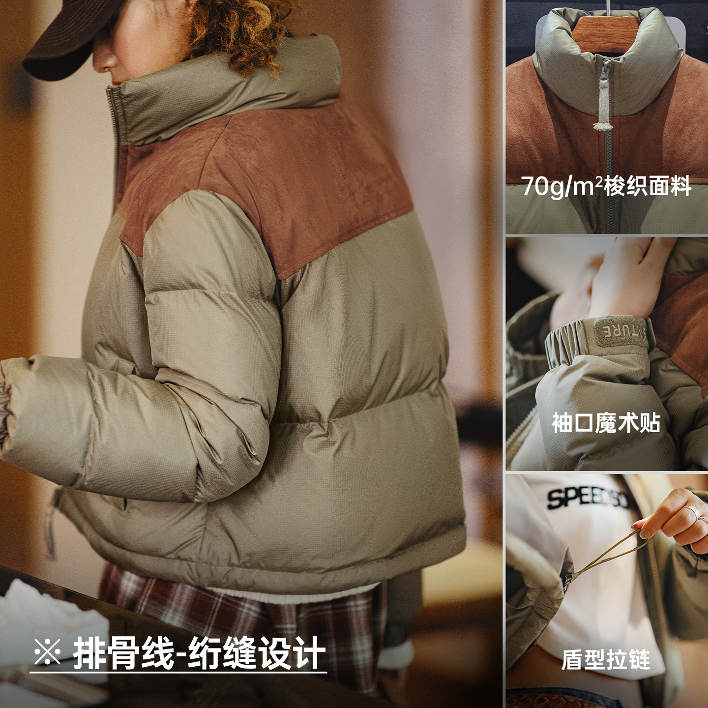 马登90白鸭绒立领撞色拼接短款修身加厚保暖面包羽绒服外套女士冬