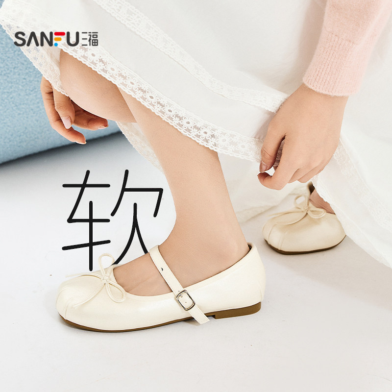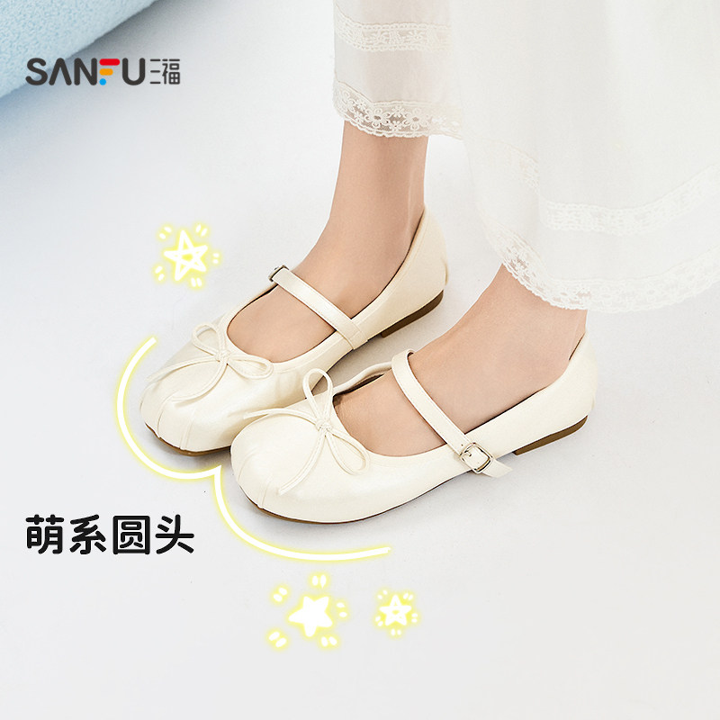 三福女单鞋夏季韩系少女蛋卷鞋时尚亮面气质娃娃鞋女鞋843751