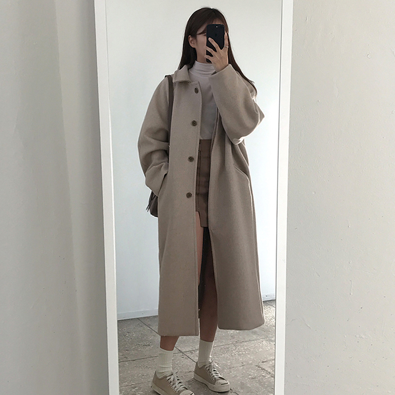 2024新款秋冬装韩版中长款黑色加棉厚呢子大衣流行学生毛呢外套女