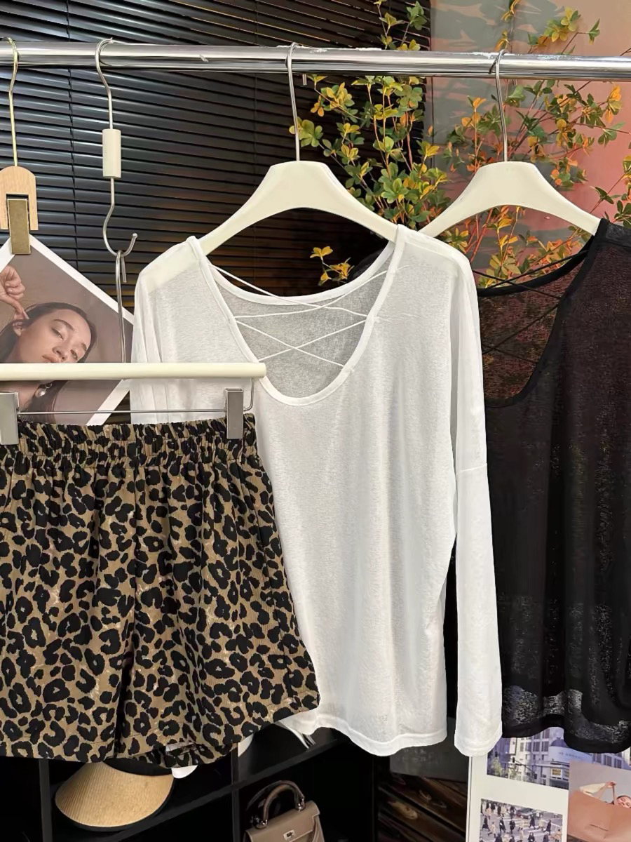 设计感露背长袖防晒衫女夏季2025年新款宽松轻薄透气冰丝罩衫外穿