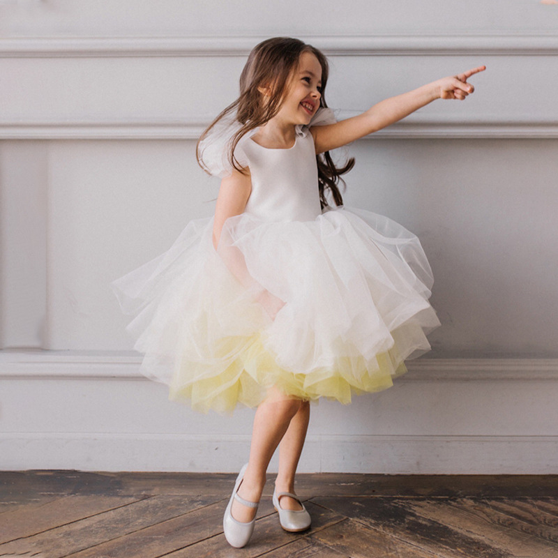白色女童连衣裙春夏蓬蓬裙气质露背甜美公主裙周岁生日礼服女