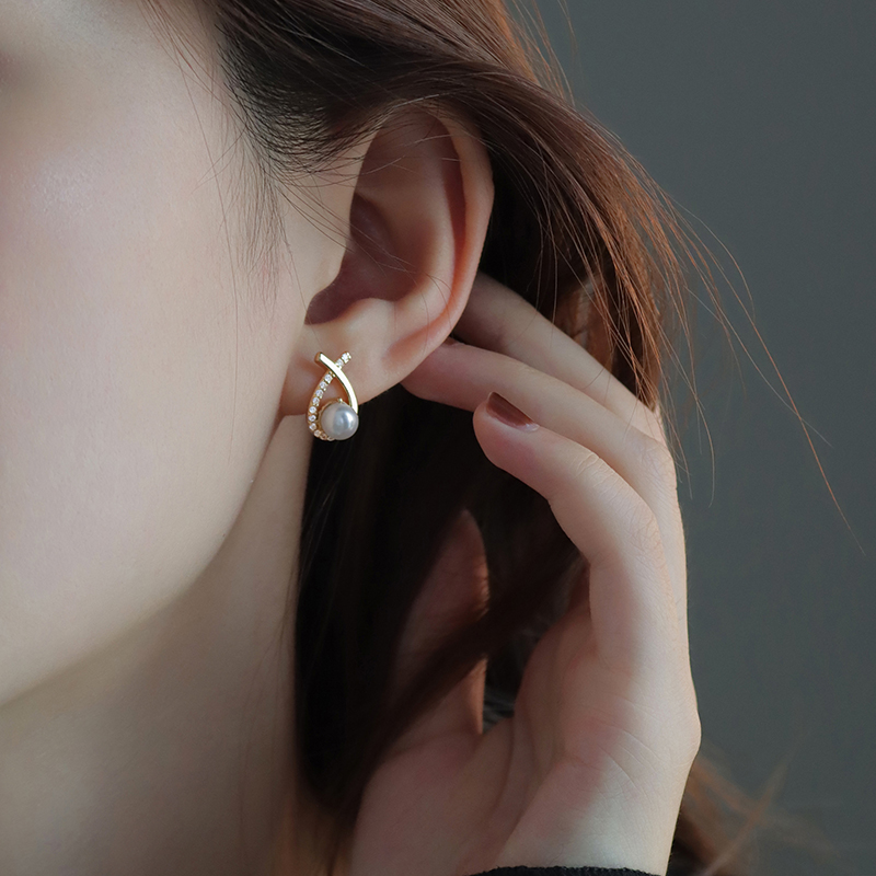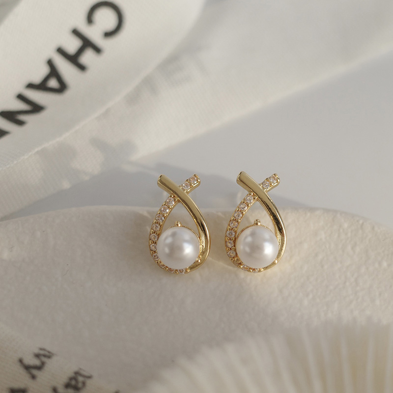 迷度S925银针简约设计感珍珠耳钉水滴耳环女气质百搭高级感轻奢