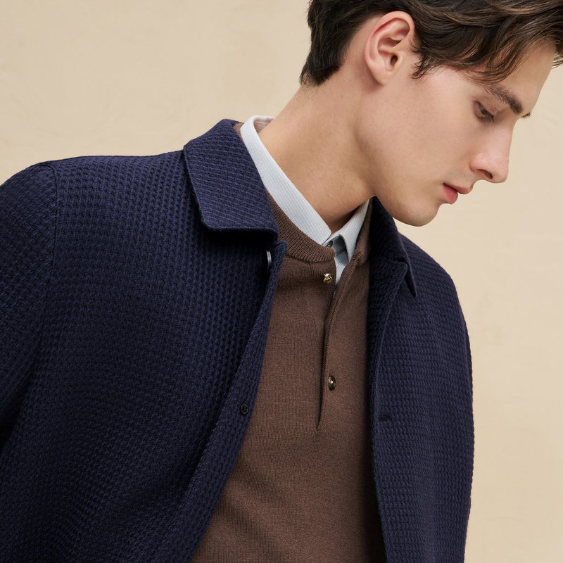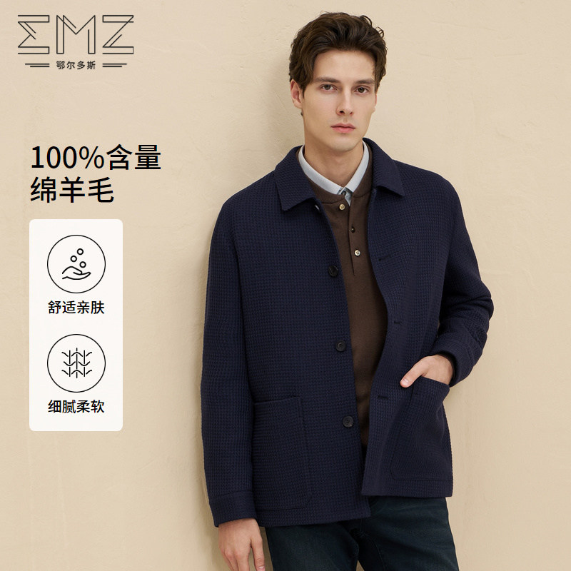 【纯羊毛】emz鄂尔多斯秋季新款休闲翻领短款毛呢夹克外套男