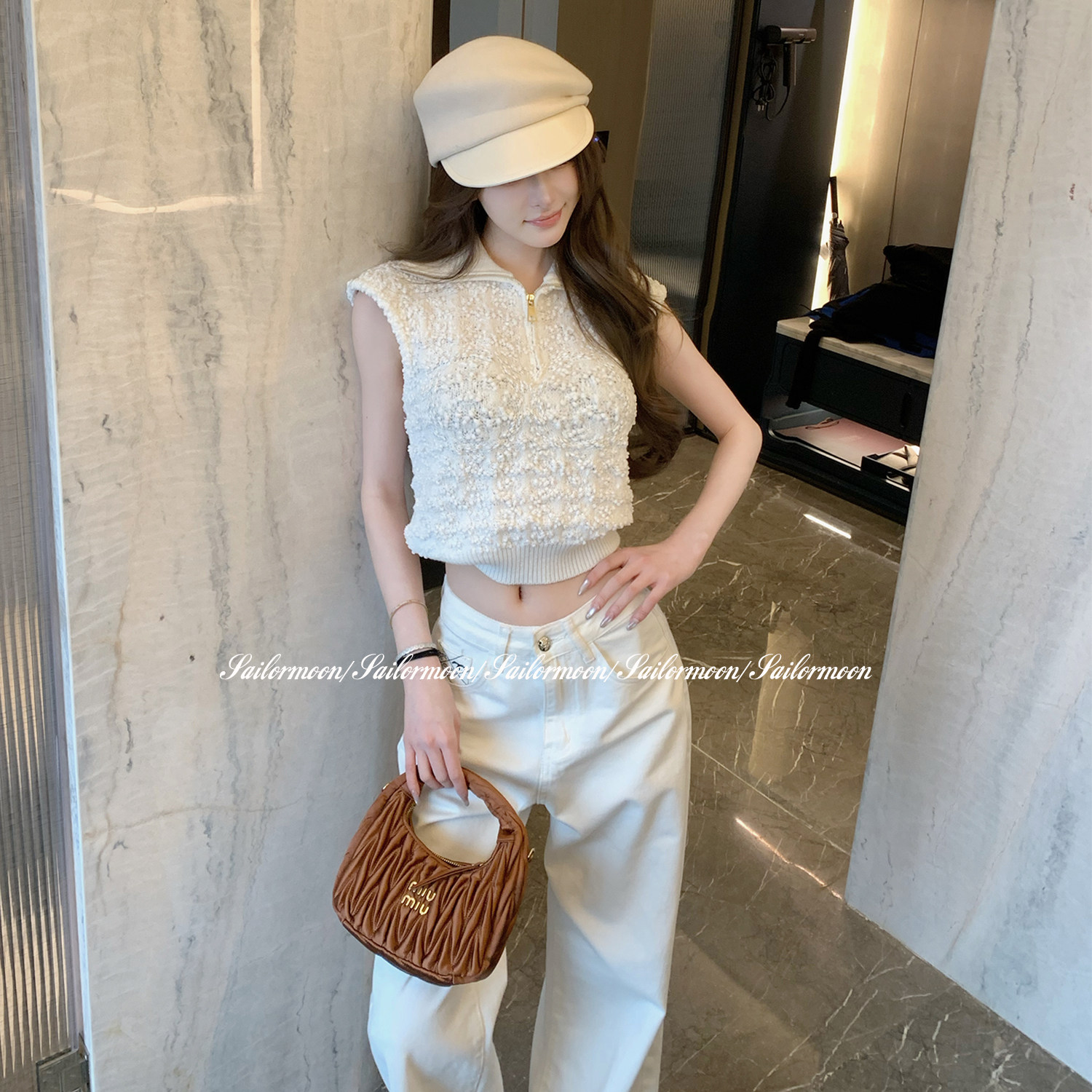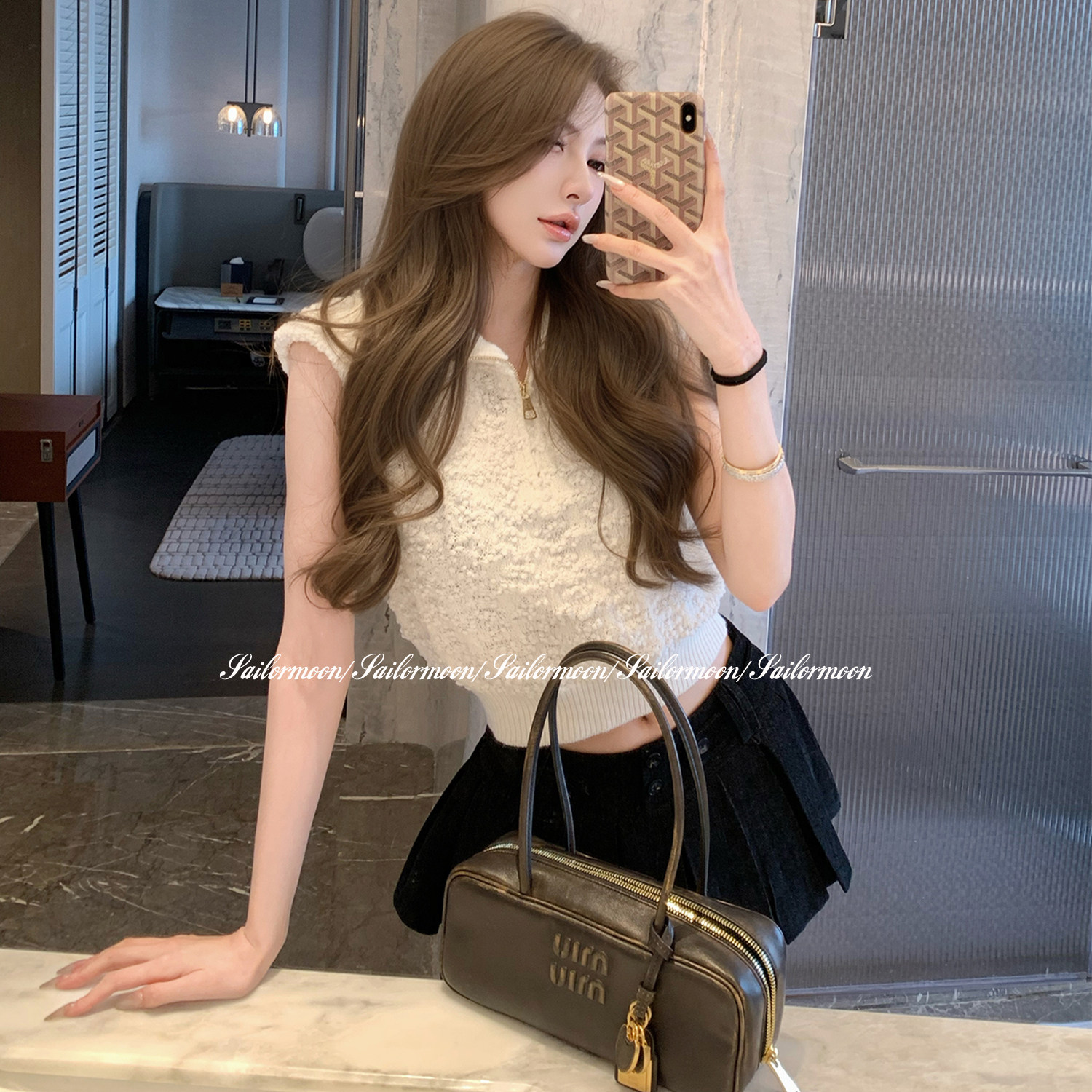 F PROJECT【Girly Samstag】半拉链Polo衫肌理感短袖针织衫上衣