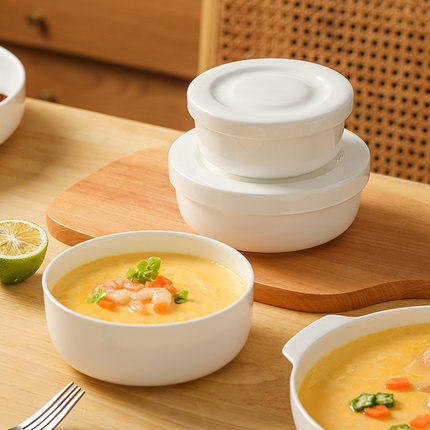 新款蒸蛋碗家用带盖陶瓷蒸鸡蛋羹专用碗隔水炖盅蒸碗微波炉白瓷碗
