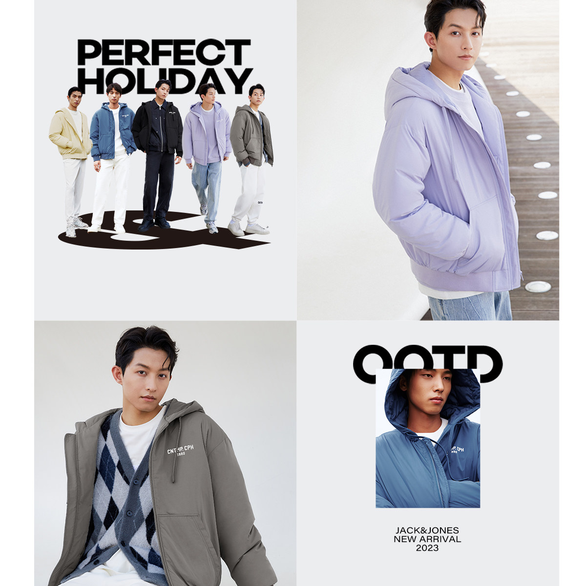 tq区绫致杰克琼斯24秋冬男棉衣字母印花连帽棉服外套情侣