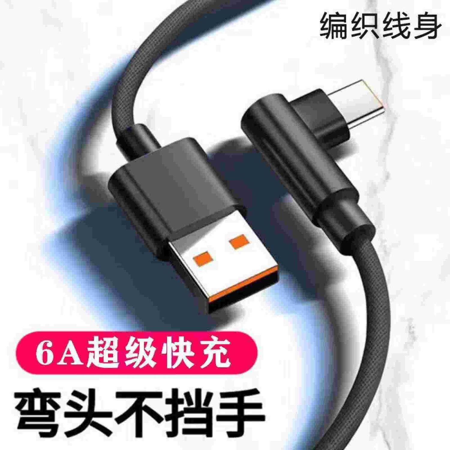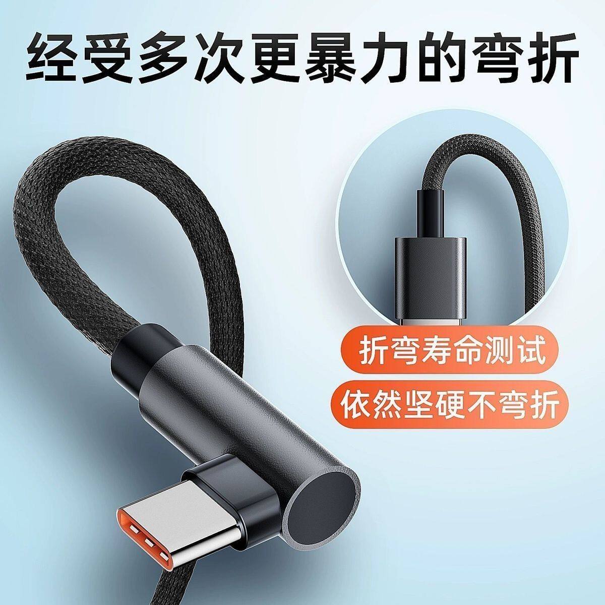 6A超级快充充电线弯头数据线加长弯头编织线适用华为荣耀vivo手机TypeC