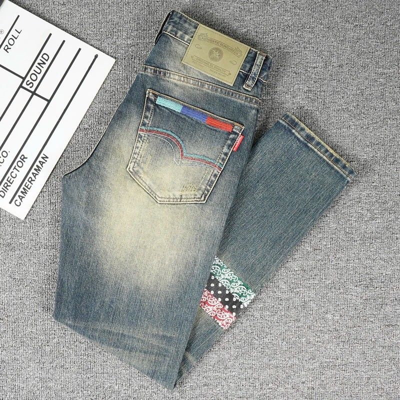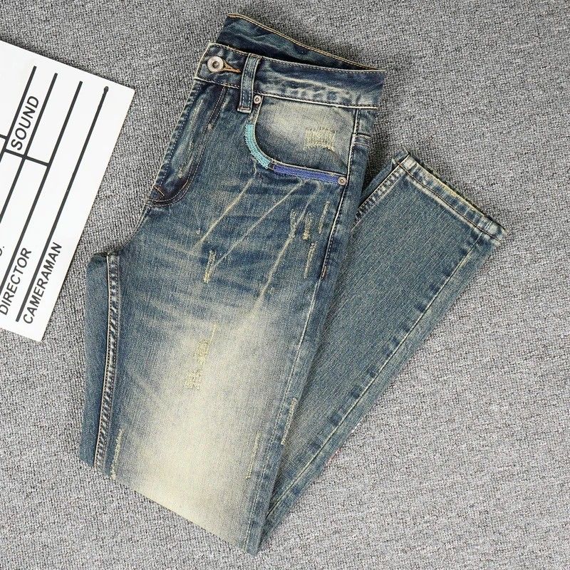 高端潮牌牛仔裤男春秋款水洗复古春季秋季痞帅修身直筒弹力长裤子