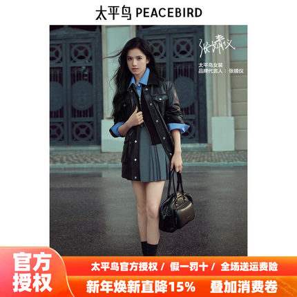 【张婧仪同款】商场太平鸟2025秋新款工装PU皮衣外套女A3BBE3403