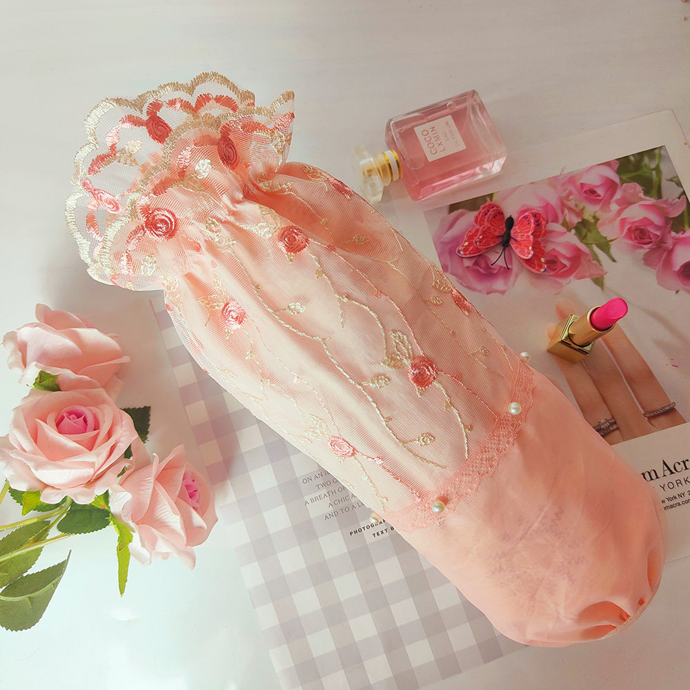 买2双送一双韩版女士女款学生防污防脏蕾丝刺绣长款 套袖桔色袖套