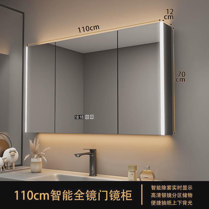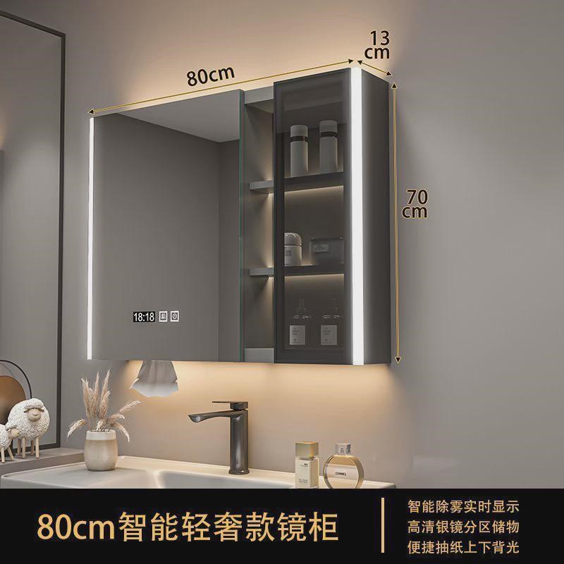 实木浴室智能镜柜单独挂墙式收纳除雾卫生间镜子带带灯一体柜