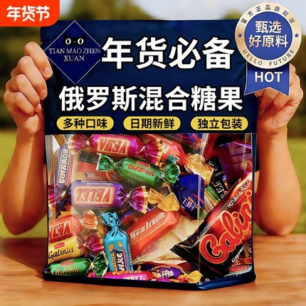 俄罗斯风味糖果混合巧克力花生紫皮牛轧糖喜糖过年年货零食大礼包