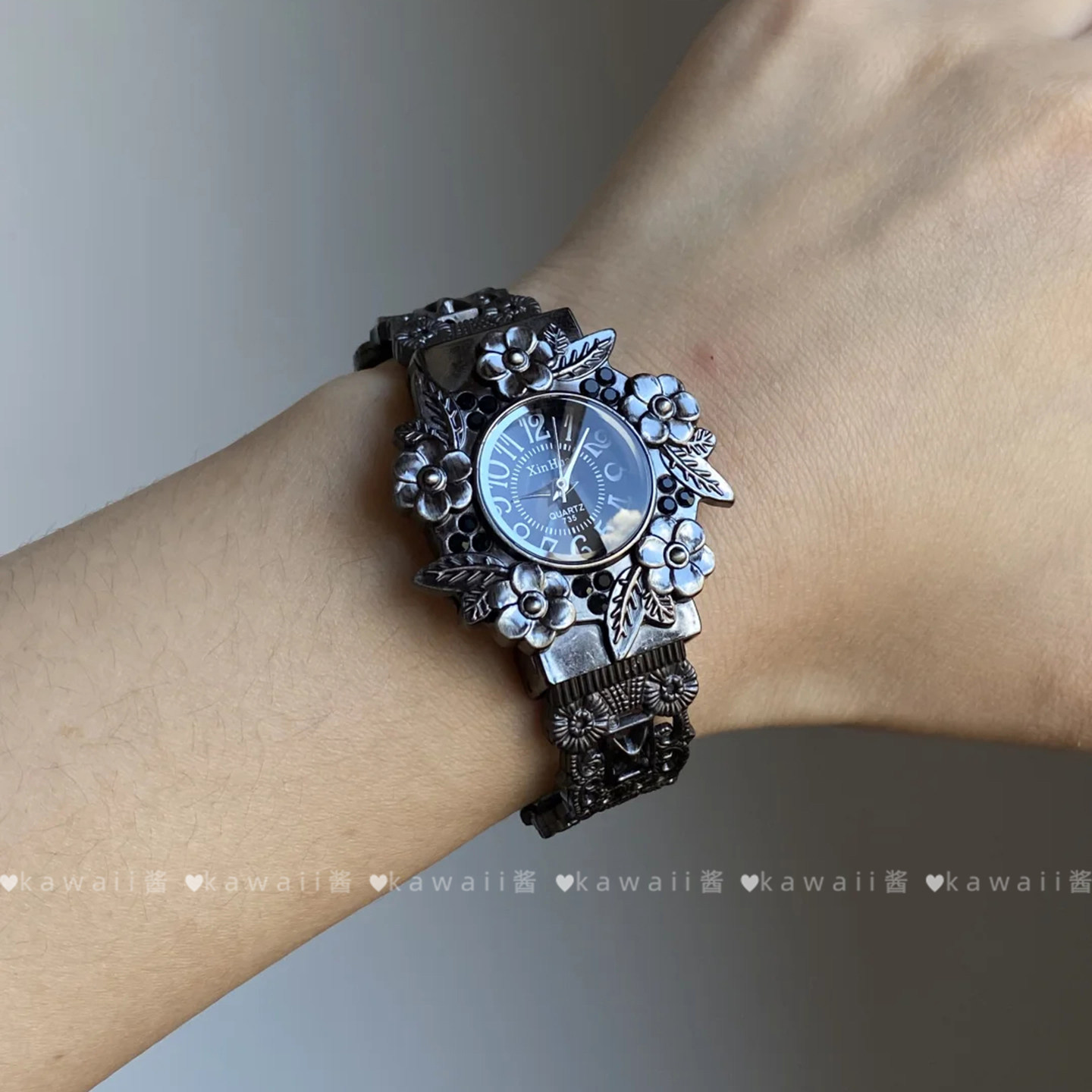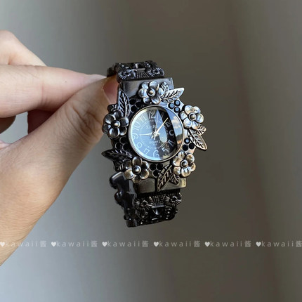 中古风重工浮雕花朵手表女小众设计感气质腕表轻奢欧美甜酷风手饰