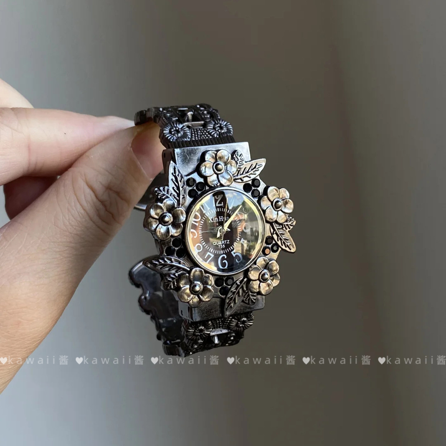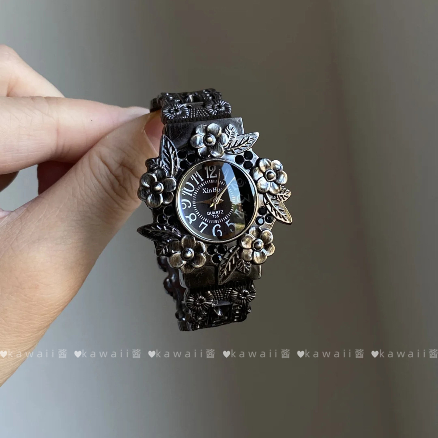 中古风重工浮雕花朵手表
