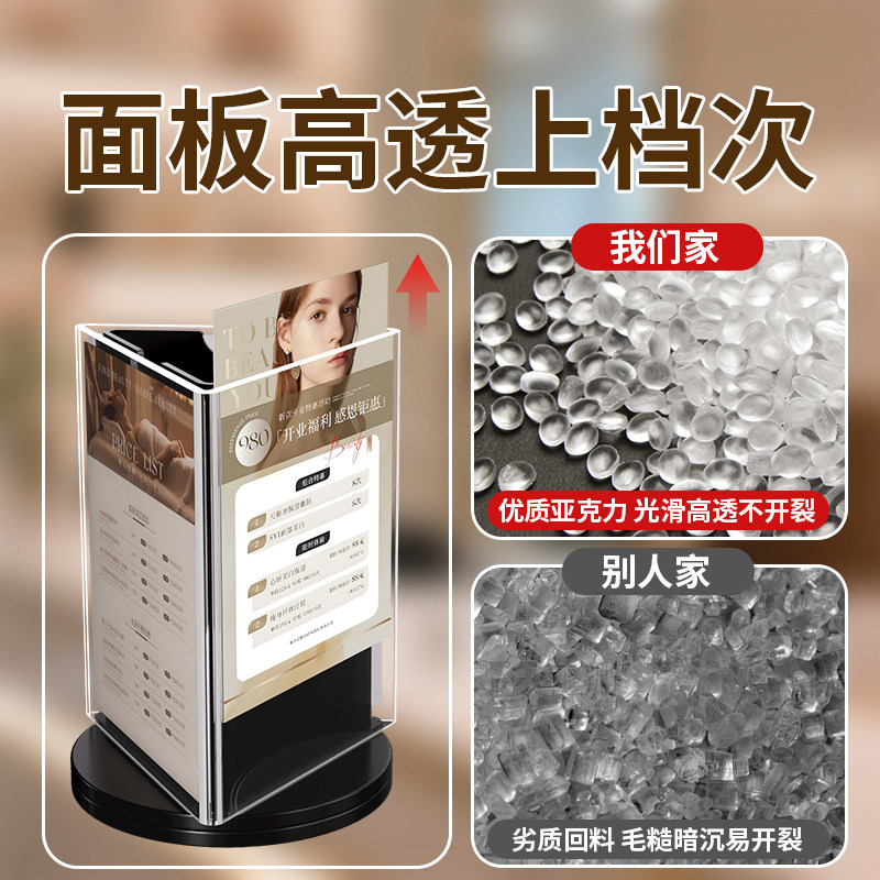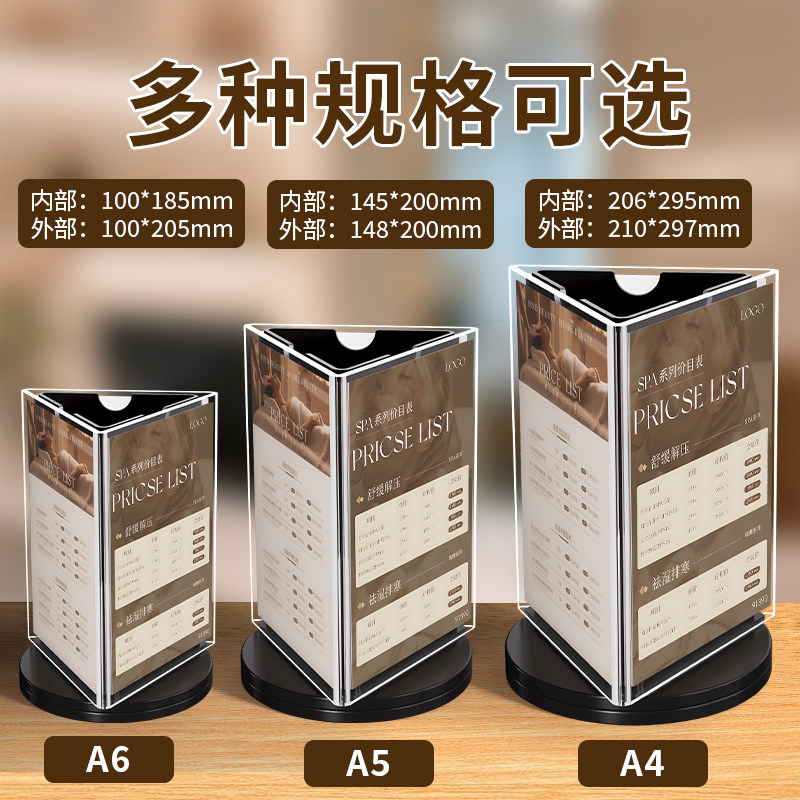 三面旋转台卡展示牌高品质亚克力立牌架a4桌牌a5餐牌菜单展示牌三角台牌桌面价格价目表酒水牌展示架餐厅吧台