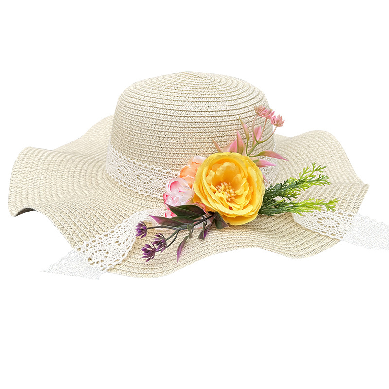 夏季花艺礼帽草编帽子女款diy手工干花遮阳帽显脸小大帽檐太阳帽