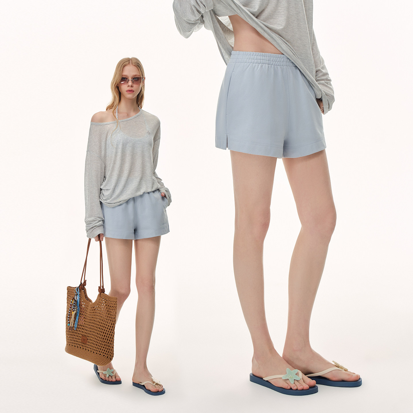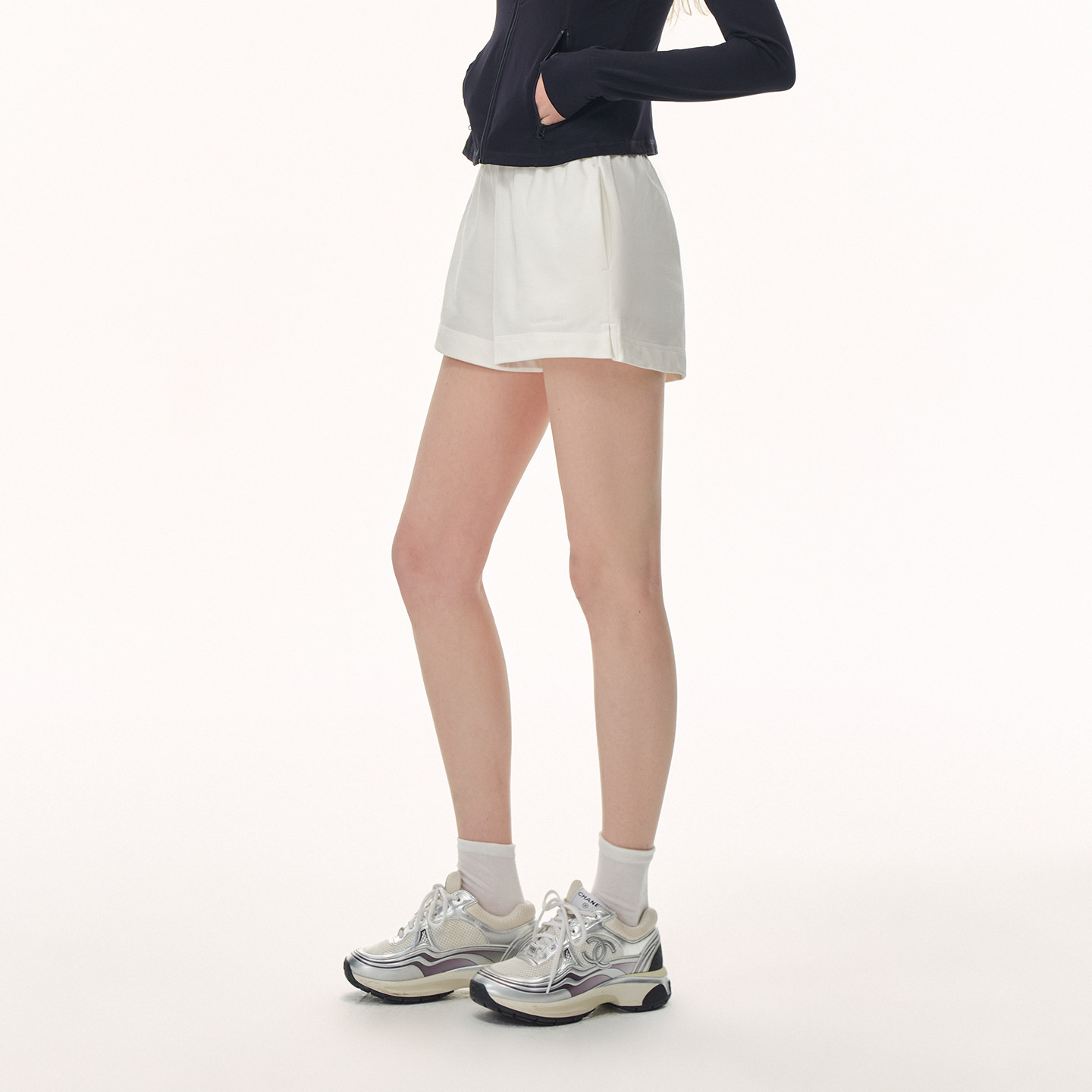 CLIMAX VISION【基础百搭】纯色刺绣侧开衩A字宽松运动休闲短裤女