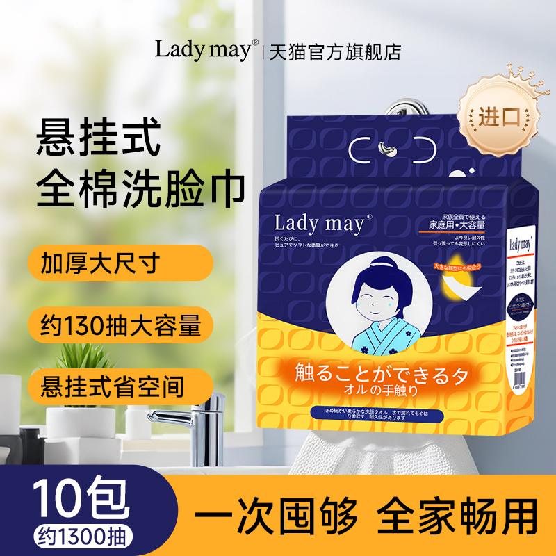 日本Ladymay悬挂式全棉洗脸巾巨厚一次性纯棉柔巾擦脸巾婴儿洁面