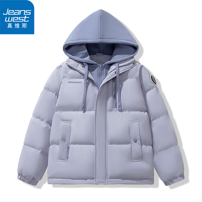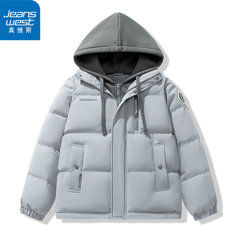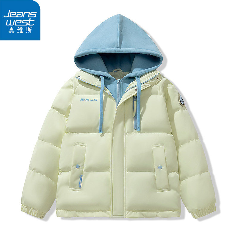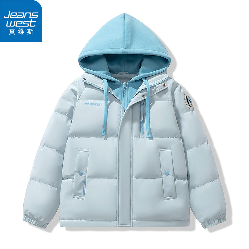 王一博同款真维斯假两件连帽棉服男女秋冬季加厚保暖棉衣潮牌外套
