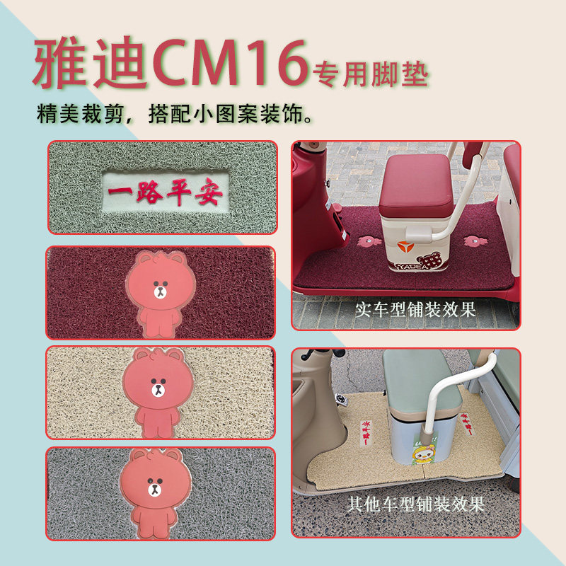适用雅迪CM16电动三轮车脚垫YD1000DZK-46C防滑厚丝圈脚踩踏板垫