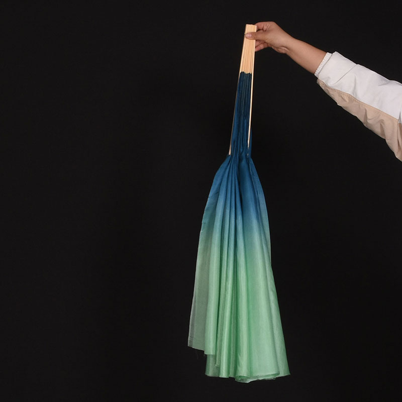 真丝舞蹈扇子跳舞扇青绿双面双色加长大古典舞胶州秧歌演出长绸扇
