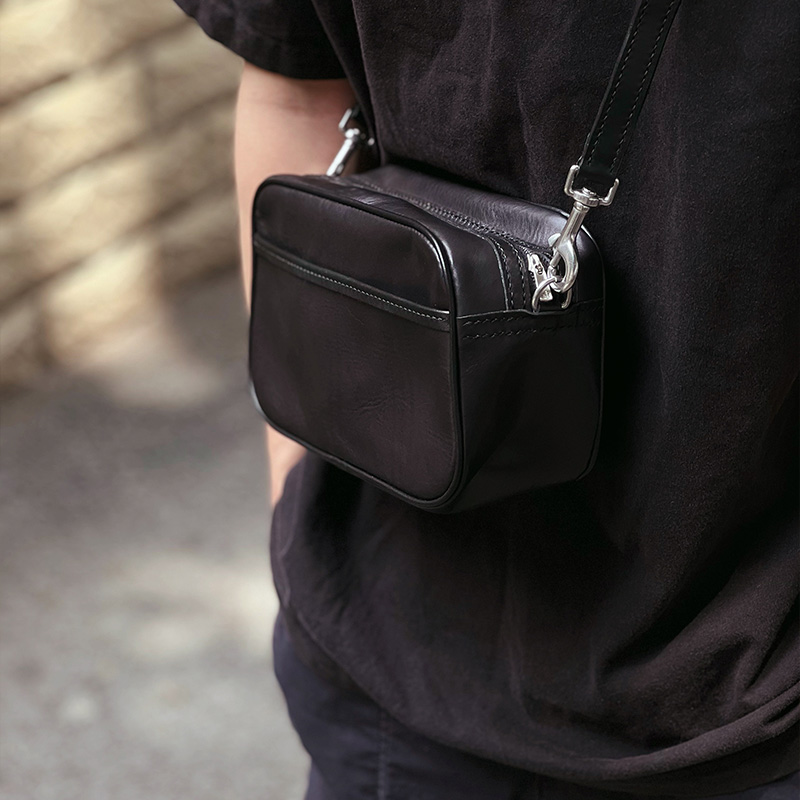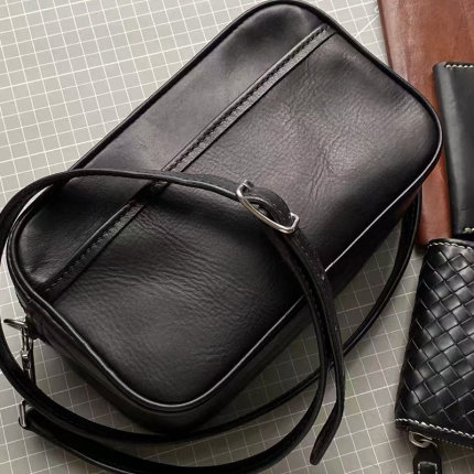 植鞣头层牛皮纯手工缝制男包斜挎小包手机包大容量YKK拉链相机包