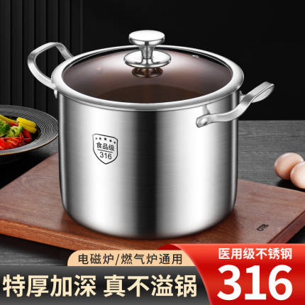 纯316不锈钢蒸锅316不锈钢特高汤锅加厚加深家用大号煮锅食品级电