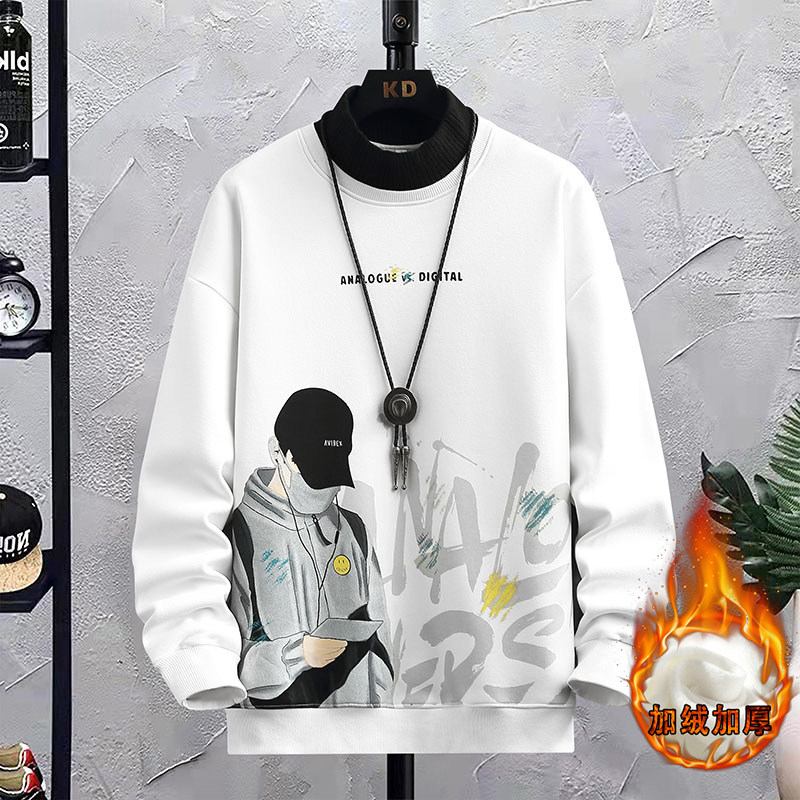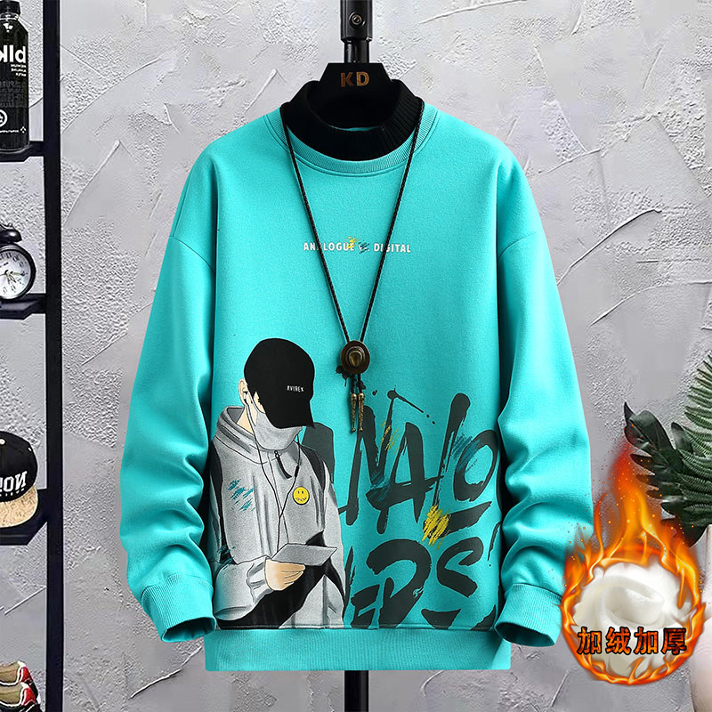 2025秋冬季半高领卫衣男款青少年学生加绒加厚大童打底衫上衣以純