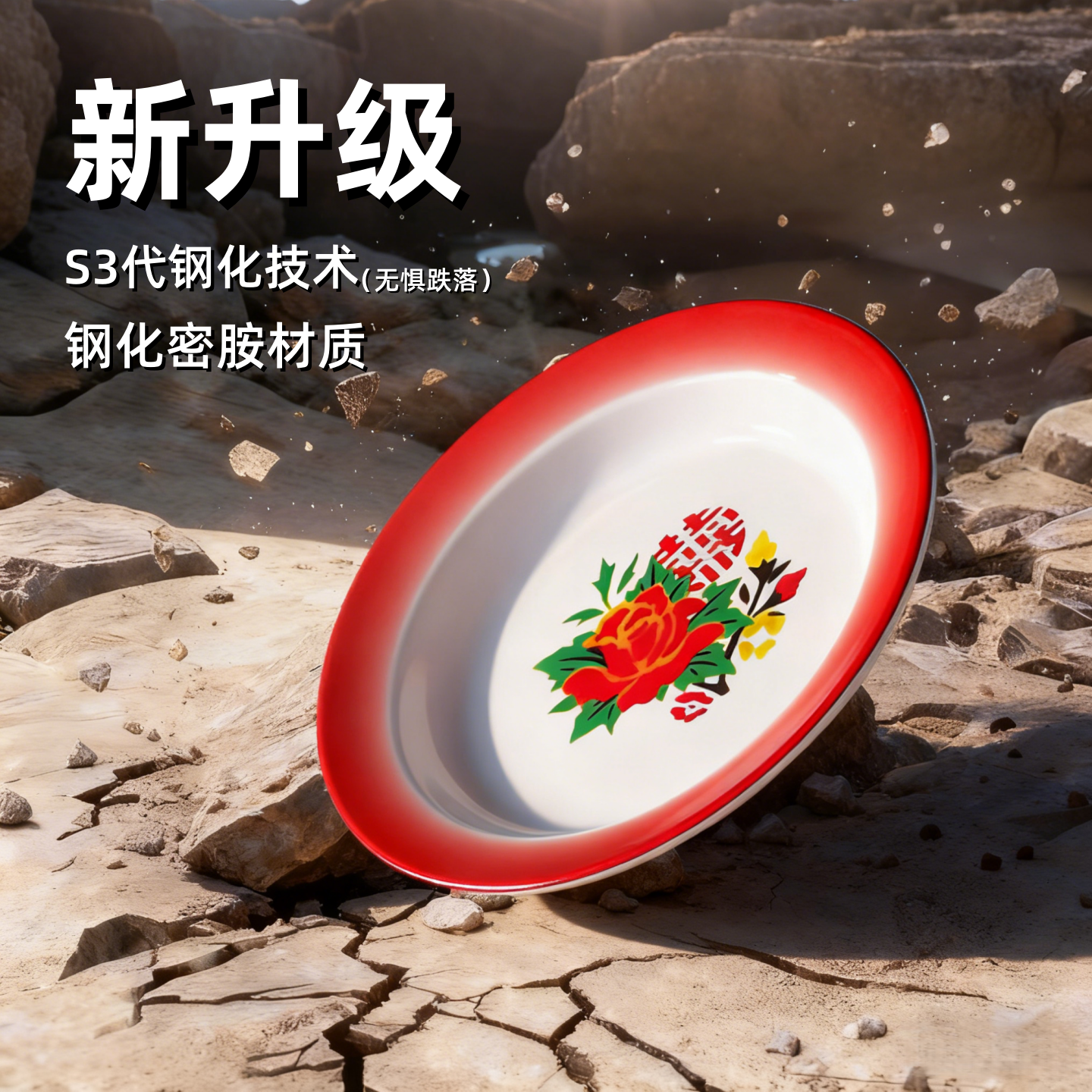 复古地摊老火锅网红市井串串菜盘仿搪瓷老式重庆火锅盘子毛肚专用