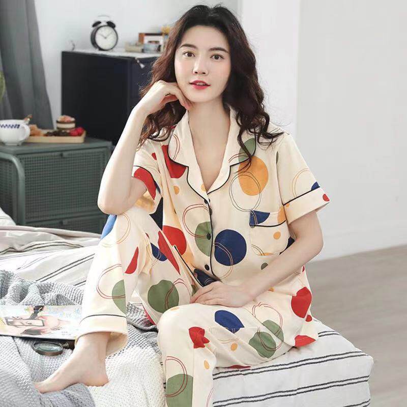 100%纯棉睡衣女夏短袖长裤两件套装宽松春夏韩版外穿家居服