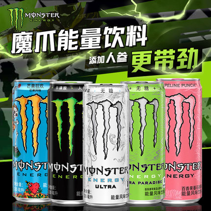 魔爪Monster维生素功能饮料330ml*24罐黑白罐奇异果有糖无糖提神