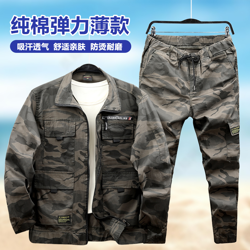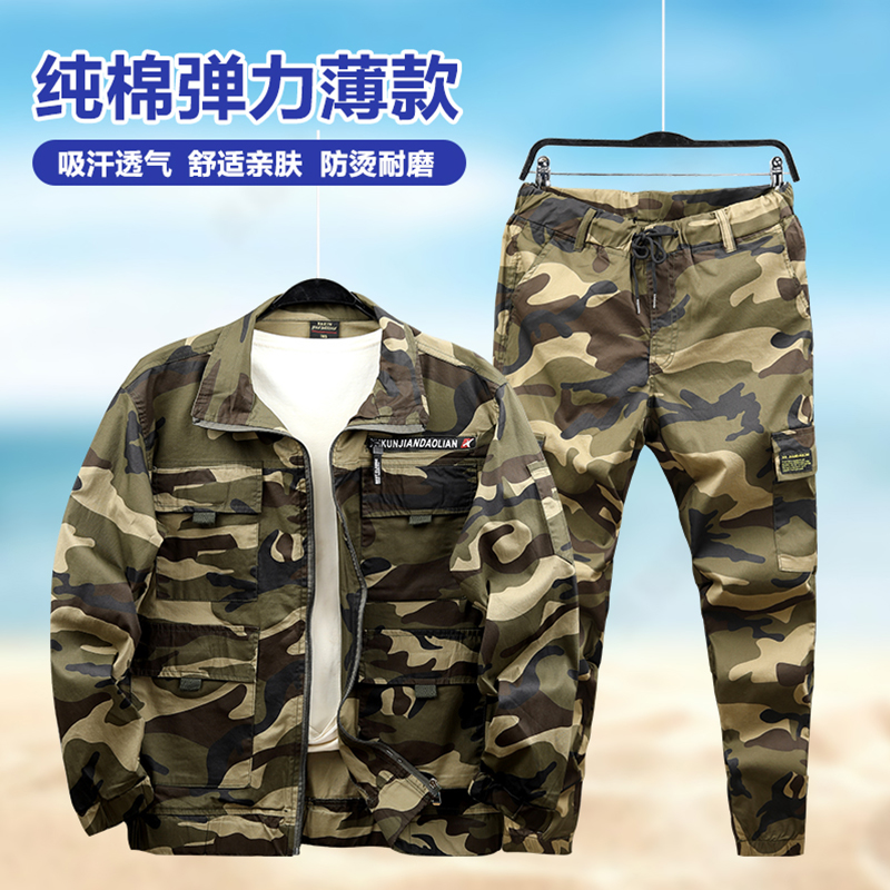 夏季薄款纯棉迷彩服套装男军训服训练服户外耐磨工作服劳保服定制