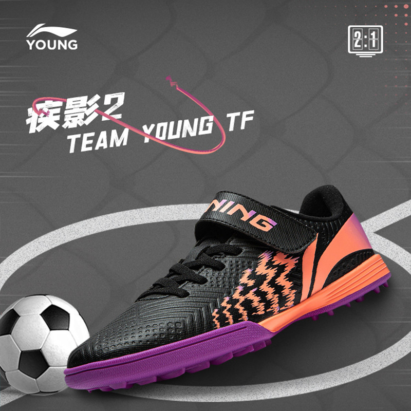 酷锐足球李宁疾影2 TF碎钉人草学生青训儿童足球鞋男女YKGU008