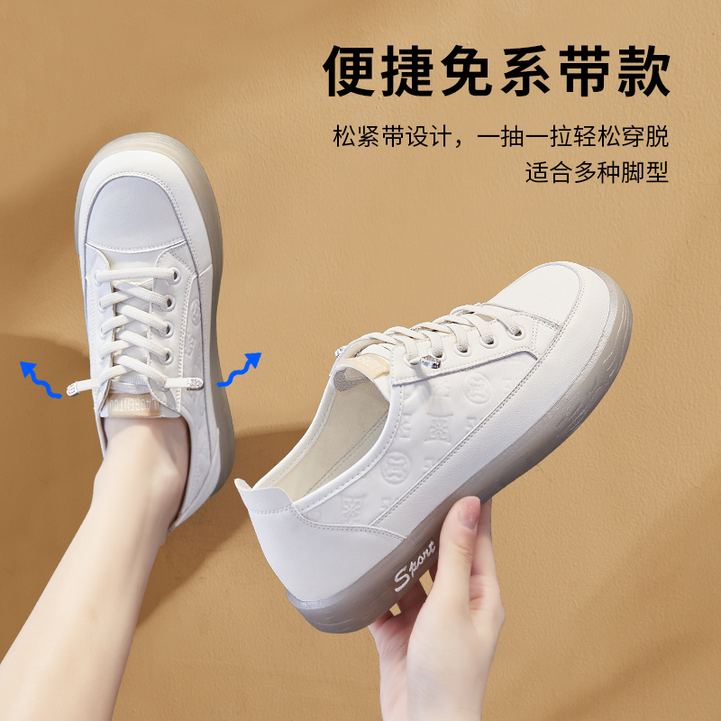 老人头小白鞋女2025夏新款舒适平底潮流休闲女鞋低帮免系带板鞋女