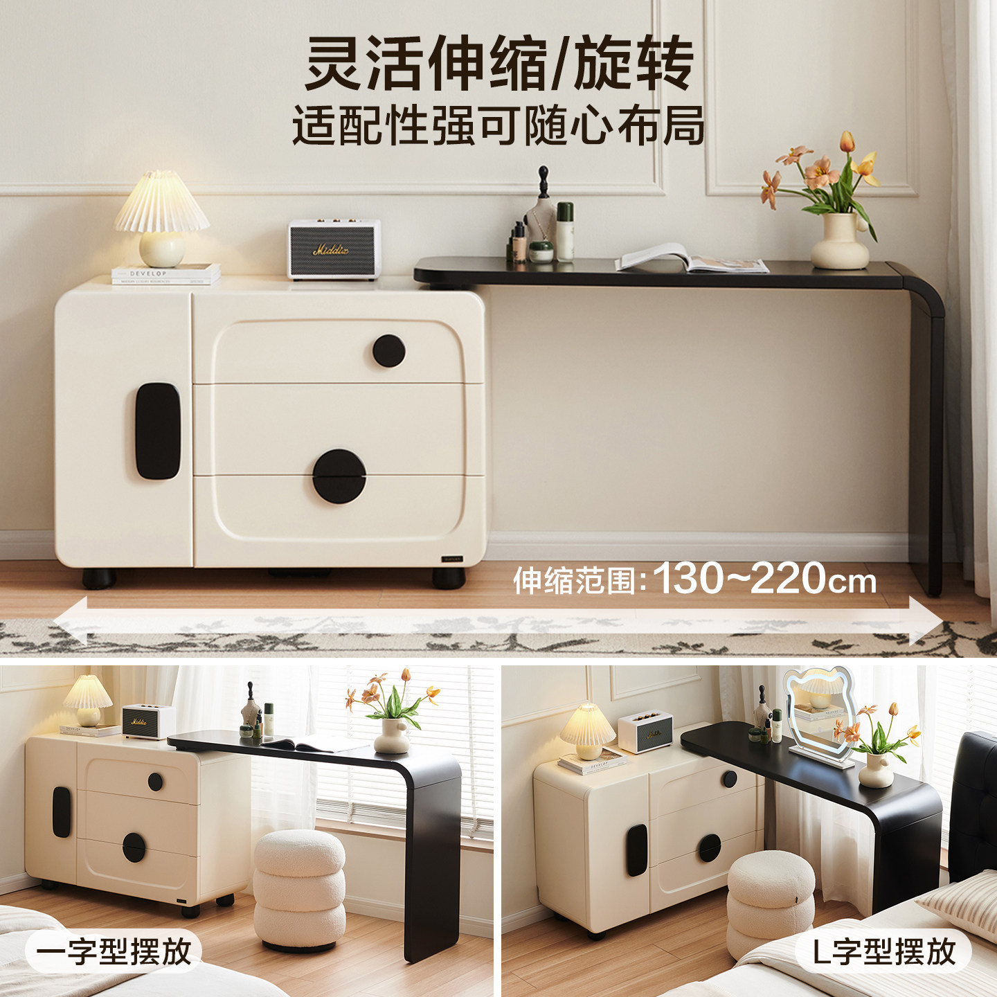 全友家居2025新款法式复古风可伸缩斗柜一体梳妆台卧室家用化妆桌