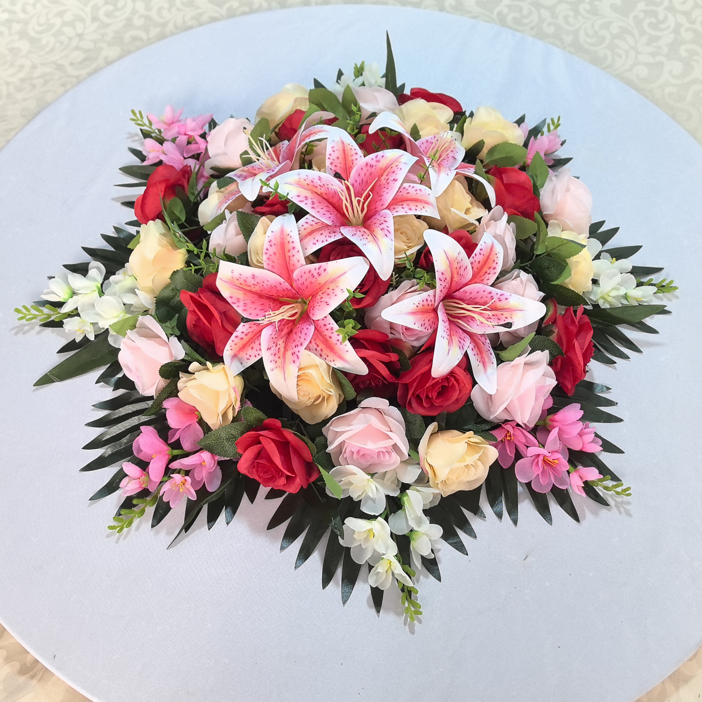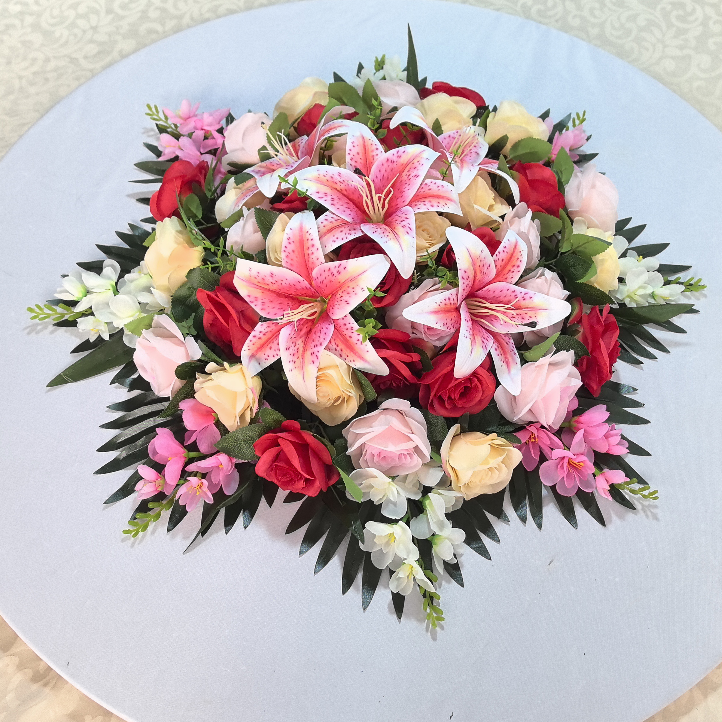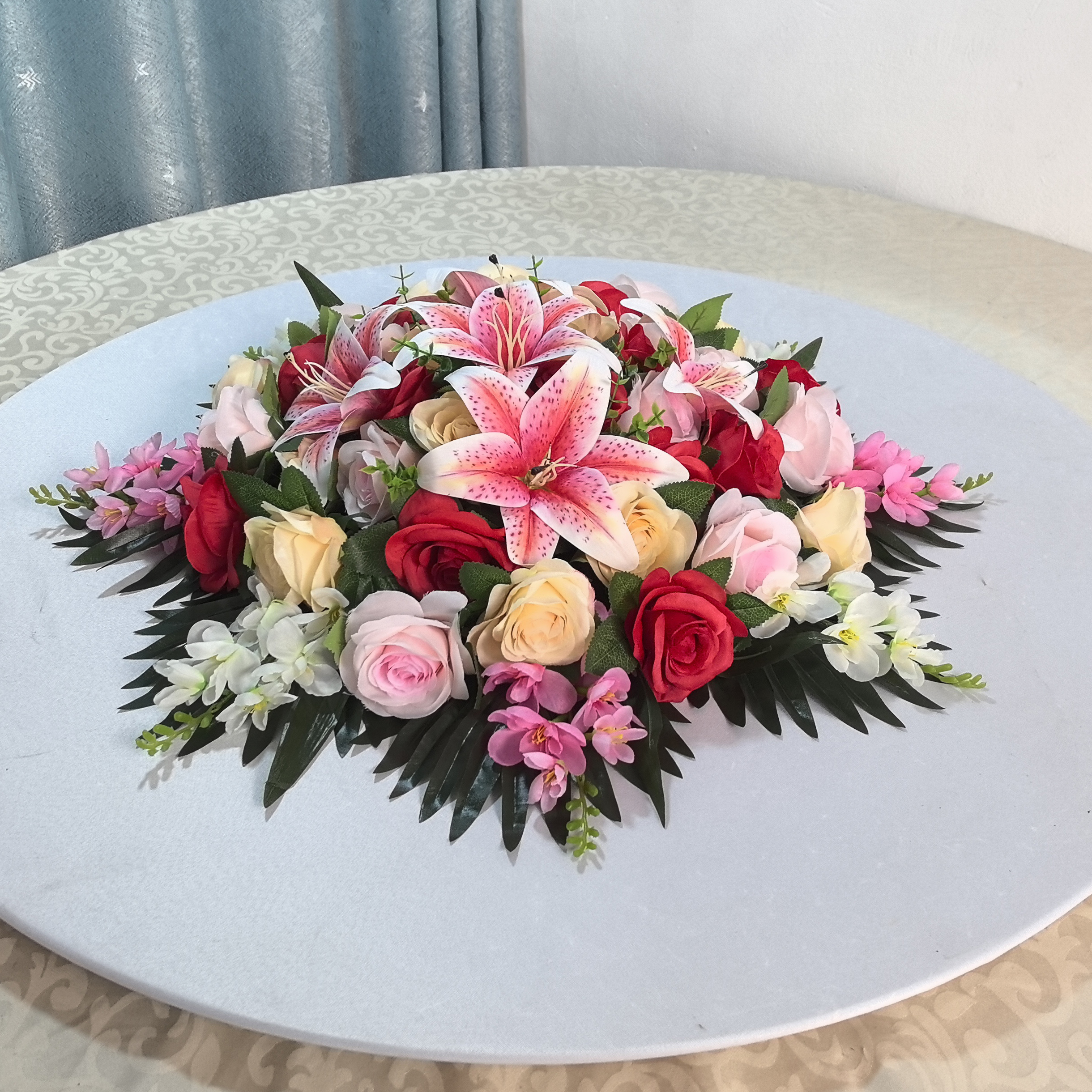 饭店插花餐桌酒店装饰大圆花餐厅摆放花中间桌花艺转盘装饰仿真花