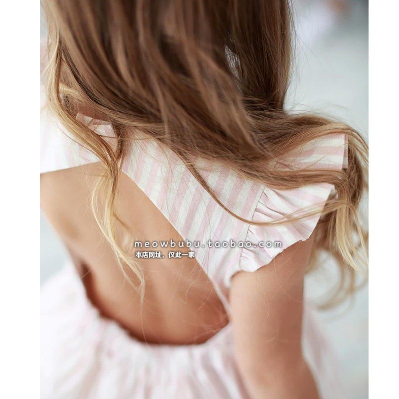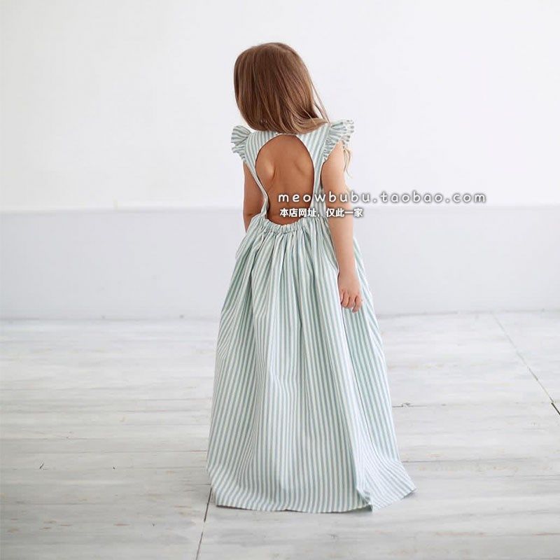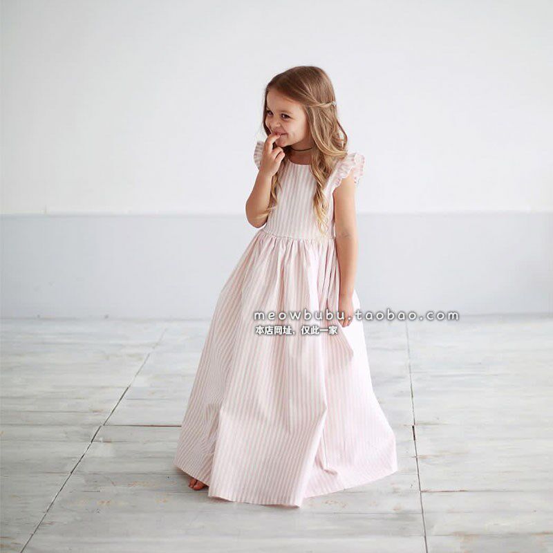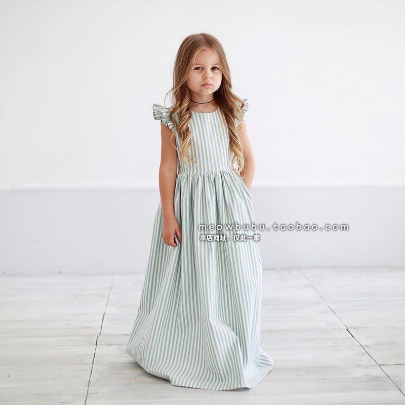 女童连衣裙2024新款夏装洋气时尚经典条纹纯棉长款浪漫度假亲子裙