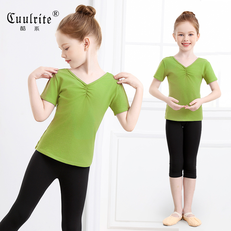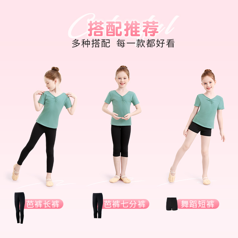 女童芭蕾舞上衣短袖练功服中国舞形体牛油果绿体操服舞蹈服套装夏