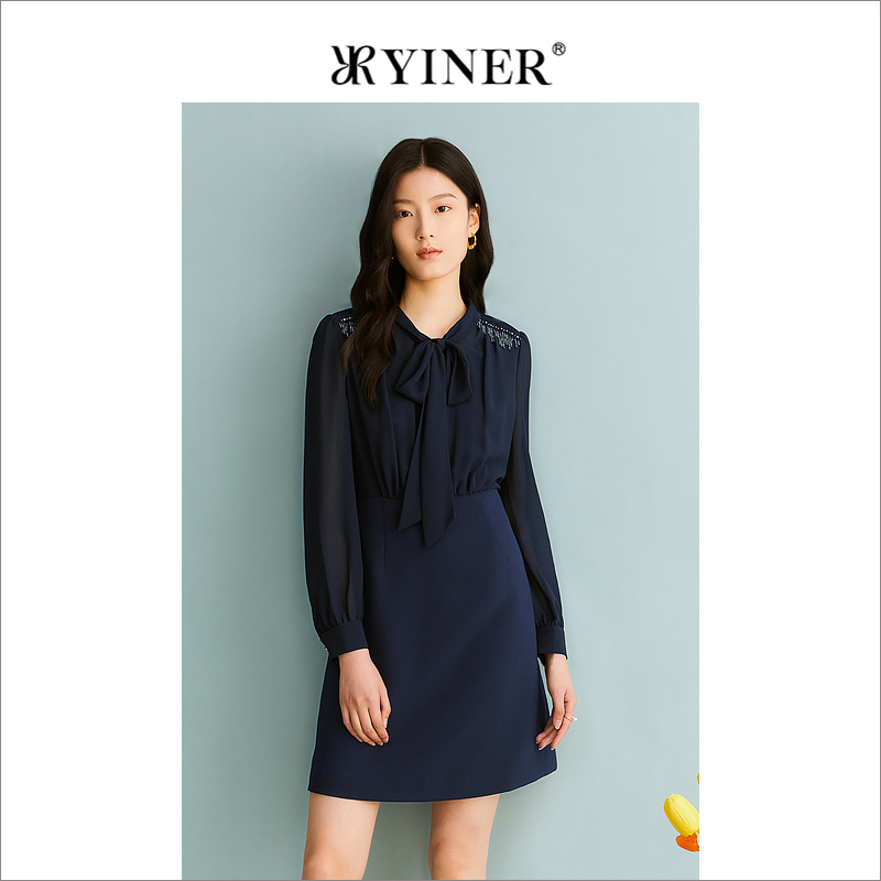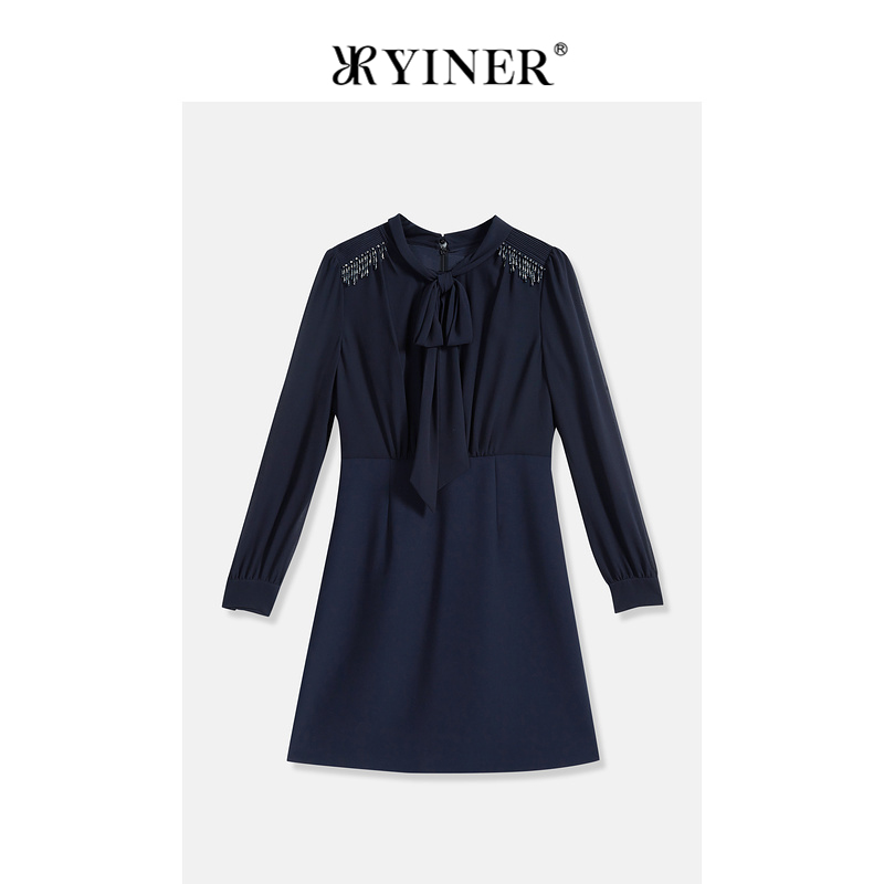 【醋酸系列】YINER音儿专选女装秋季法式钉珠连衣裙
