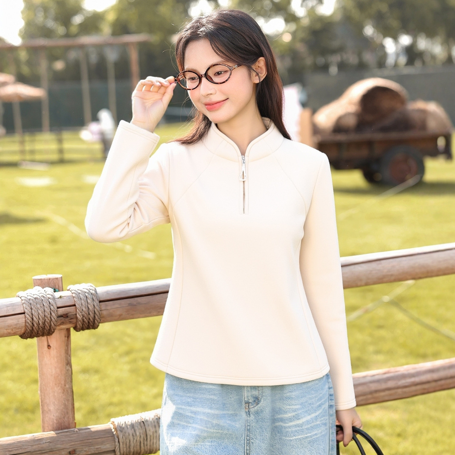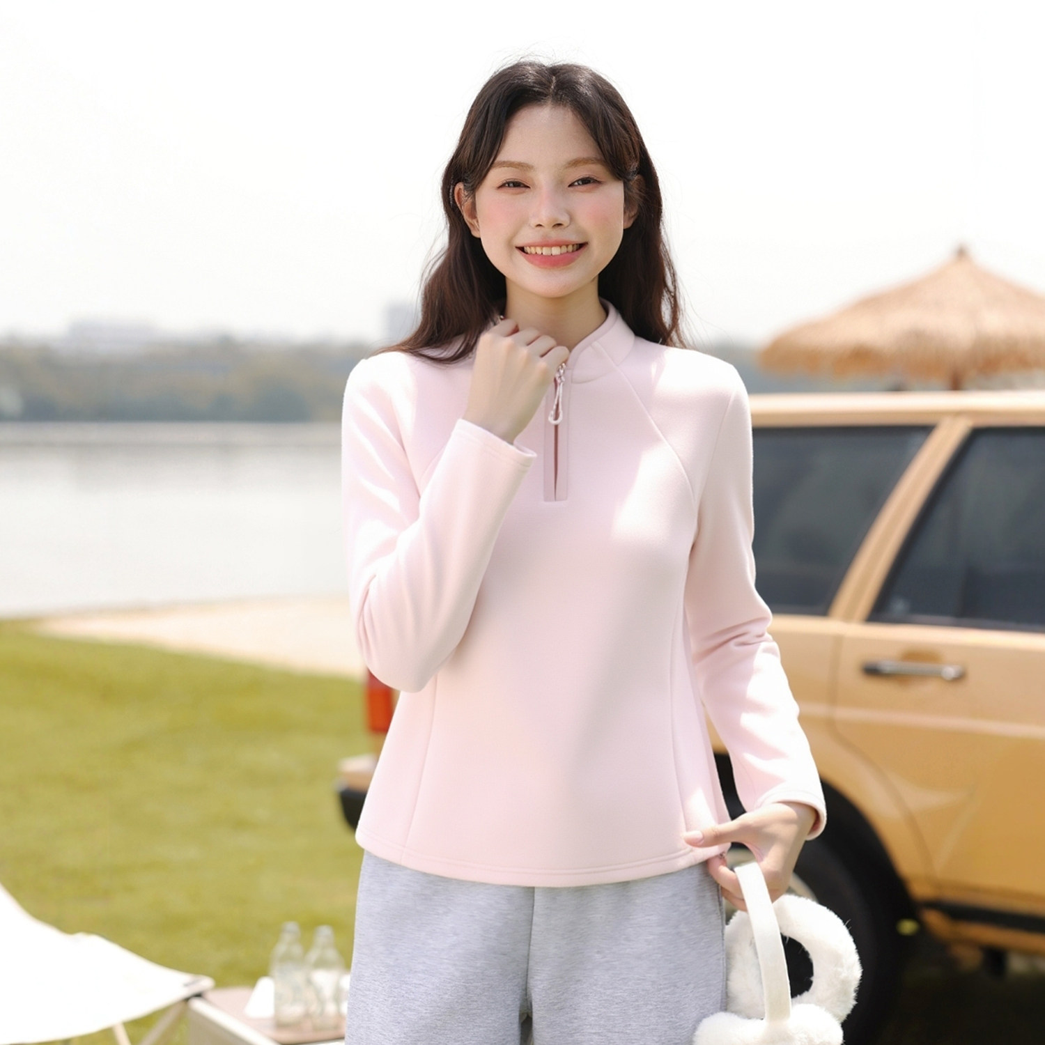 班尼路黑色半开领加绒加厚卫衣女款2025秋冬新款小个子保暖上衣H