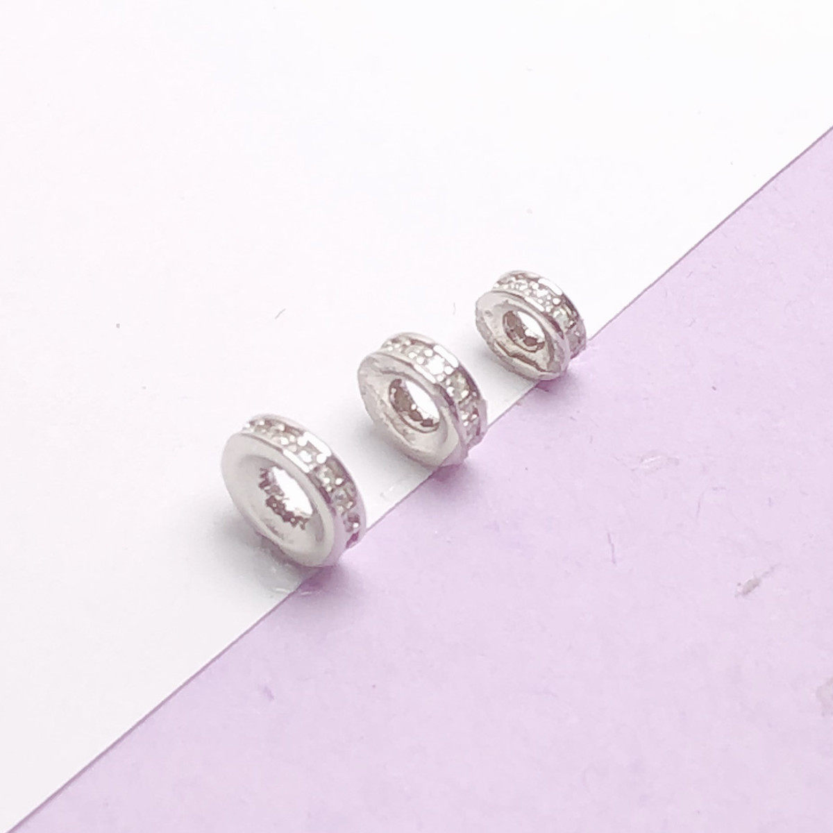 s925纯银白金镶钻车轮隔片垫片手工diy珍珠隔珠手链串珠配饰材料