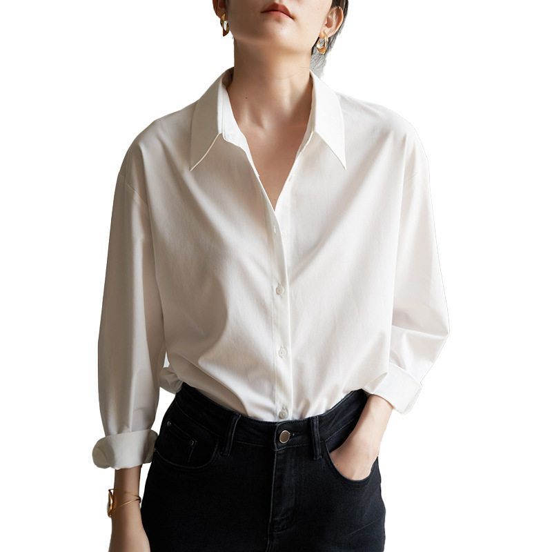 职业通勤叠穿外穿白色衬衫女早春2025年新款翻领长袖气质显瘦上衣