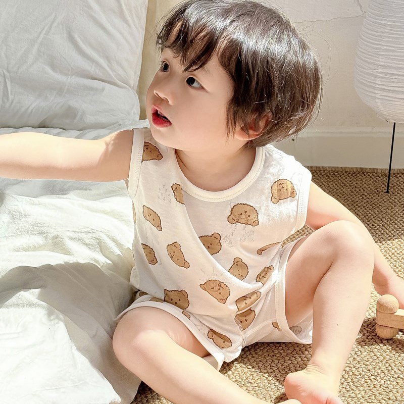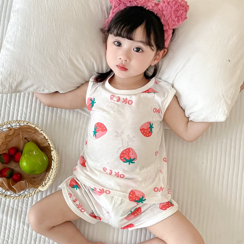 夏季宝宝纯棉背心套装呼吸透气儿童睡衣薄男童女童卡通无袖家居服