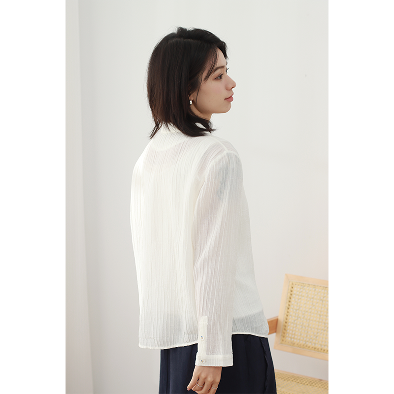 无色无味苎麻棉小鱼刺绣衬衫女款